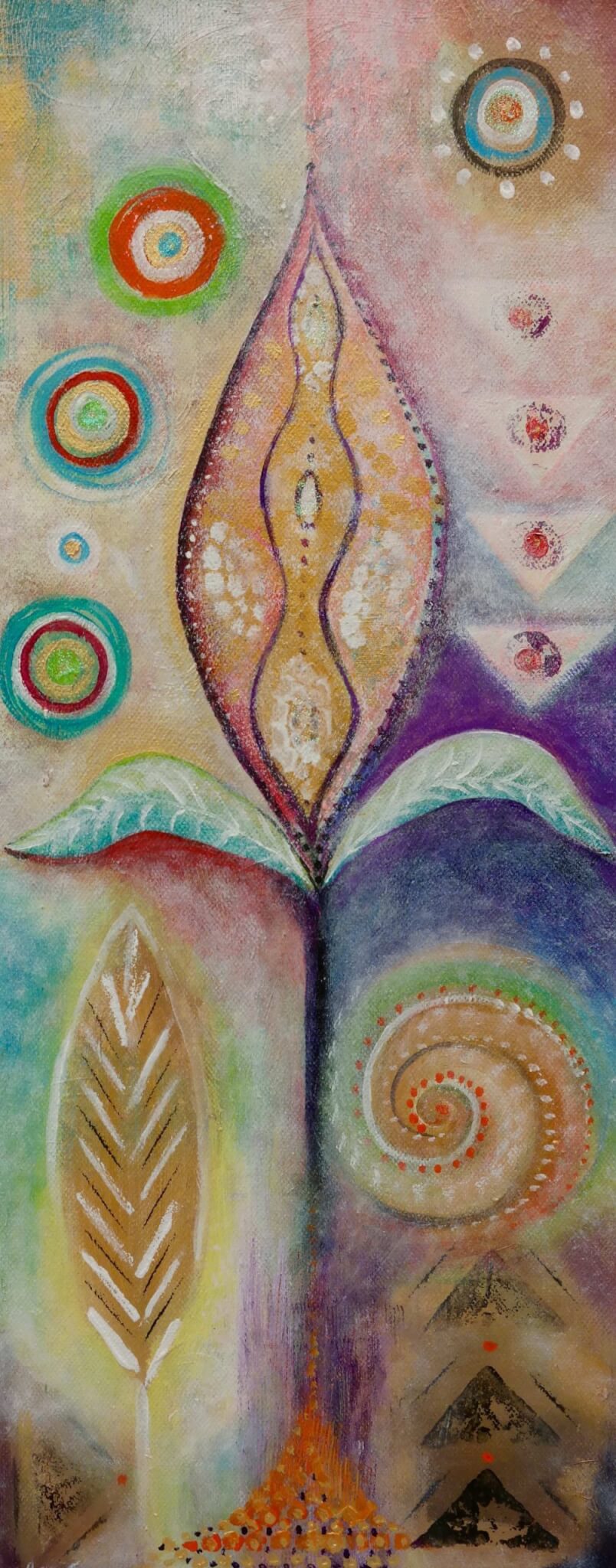 My art has been described in many different ways as vibrant, colourful, luminous, evocative, sensual, passionate, meaningful, symbolic, emotive and darn right juicy! I live to inspire, empower and celebrate the Feminine.